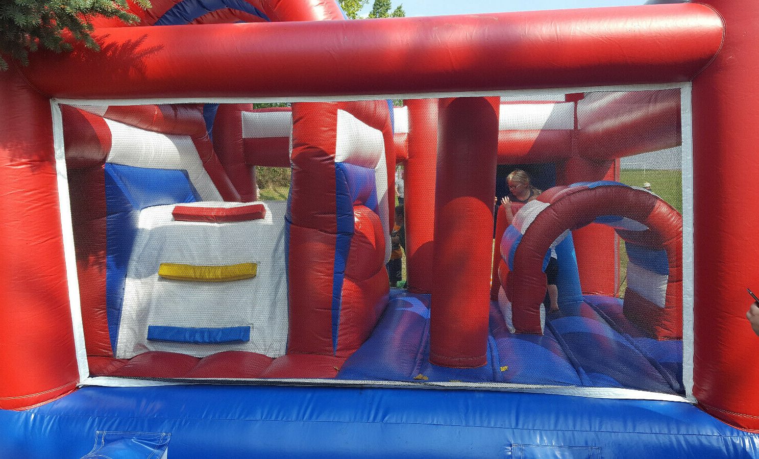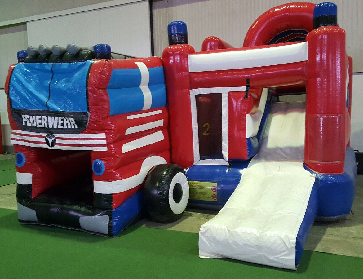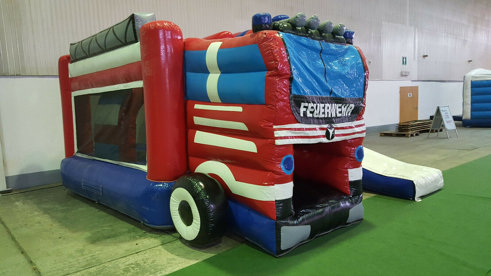 Diese Hüpfburg ist ein Highlight für kleine Feuerwehrfrauen und -männer. Ausgestattet ist sie mit einer großen Rutsche und innenliegenden Spielhindernissen.