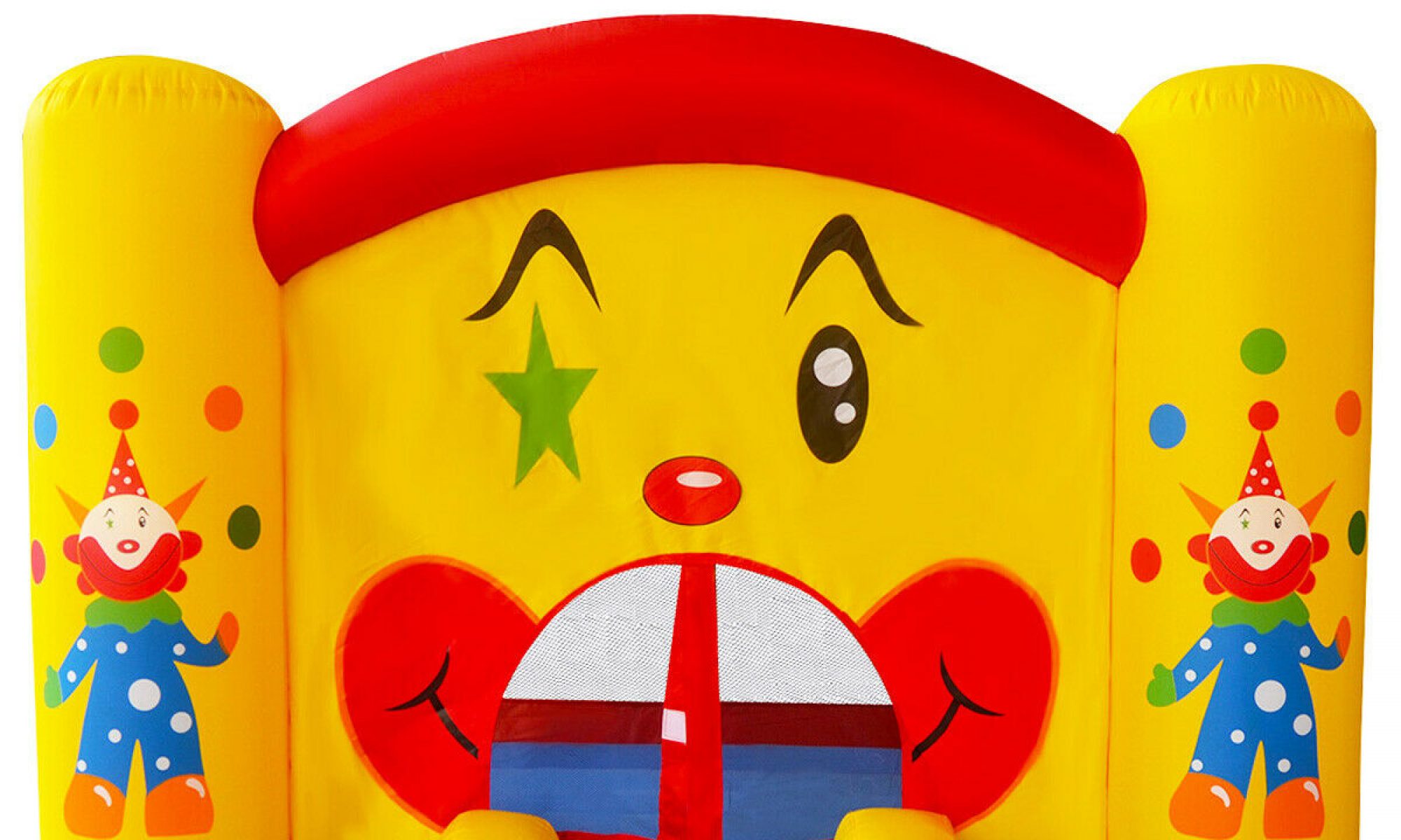 Entdecken Sie unsere Mini-Hüpfburg Clown. Die Hüpfburg für die kleinsten Turner bietet eine Rutsche sowie ein Netz ringsum, sodass Sie Ihre Kinder von jeder Seite sehen können.